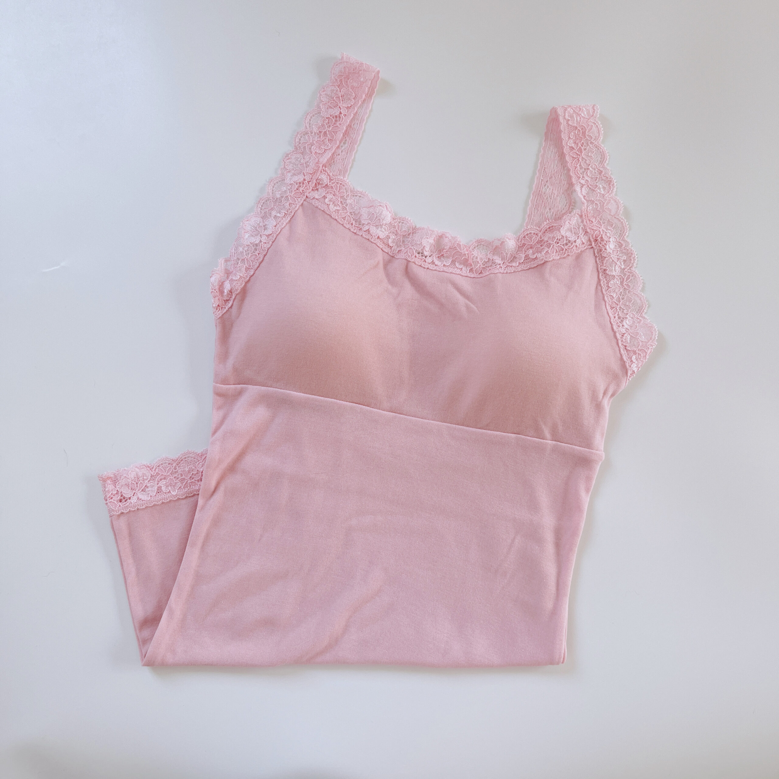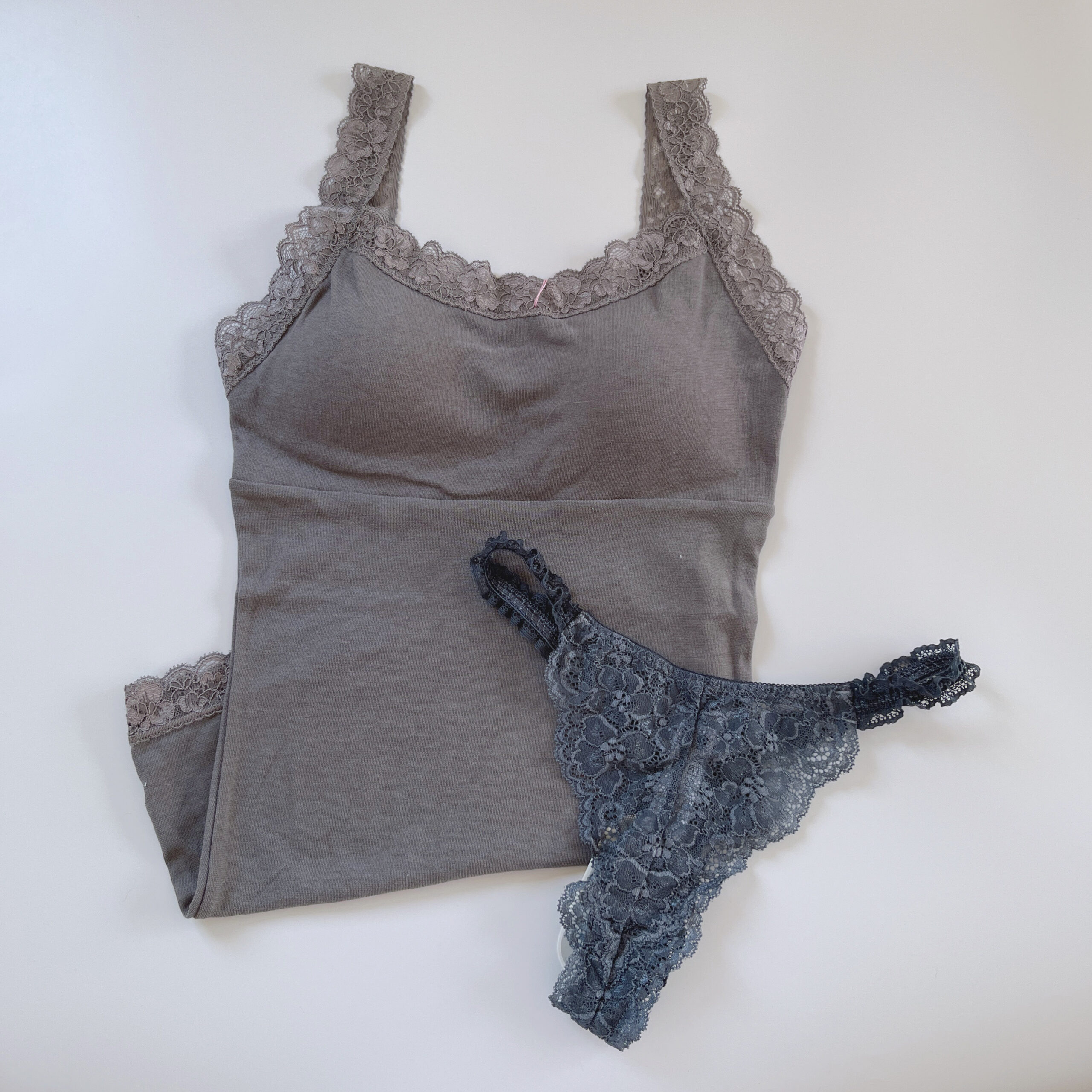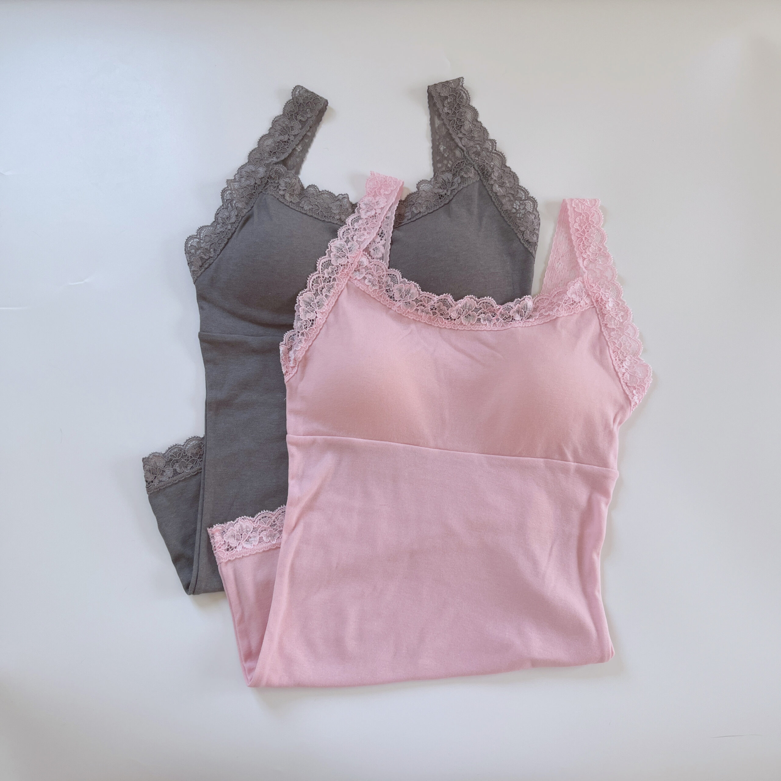 こちらはキャミタイプのMサイズ、ピンクとグレーのお色になります。